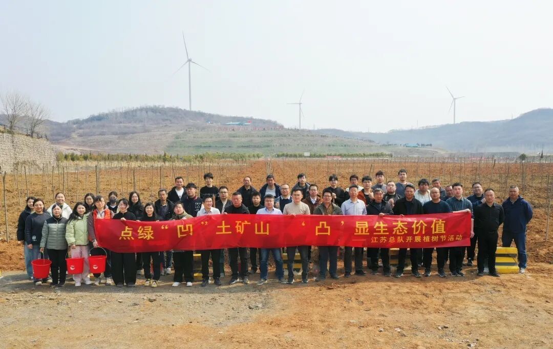 最是一年春光好,植树添绿正当时。3月12日,在第48个全民义务植树节到来之际,江苏总队组织60余名员工来到总队所属的盱眙县中材凹土公司黄泥山矿区,开展了“点绿‘凹’土矿山,‘凸’显生态价值”的义务植树活动,以实际行动践行绿色发展理念,为矿山播撒新绿,共建美丽家园。